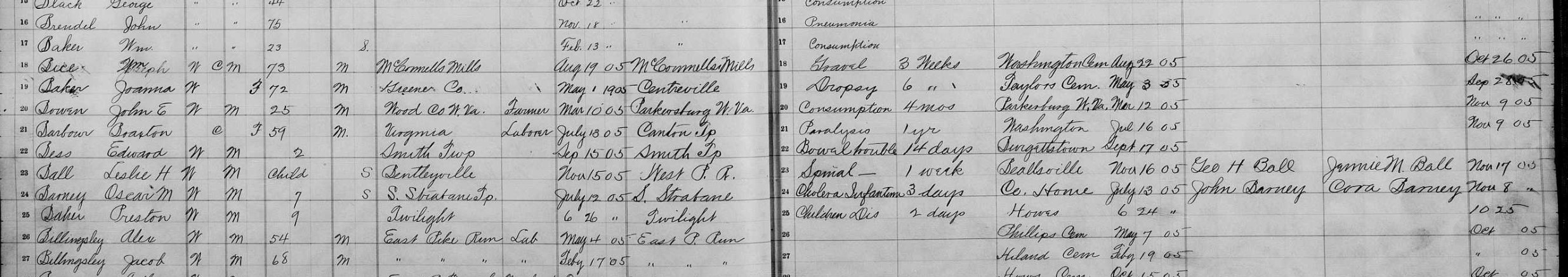 Washington County, PA Death Records, 1893 - 1906, Vol 1, page 22