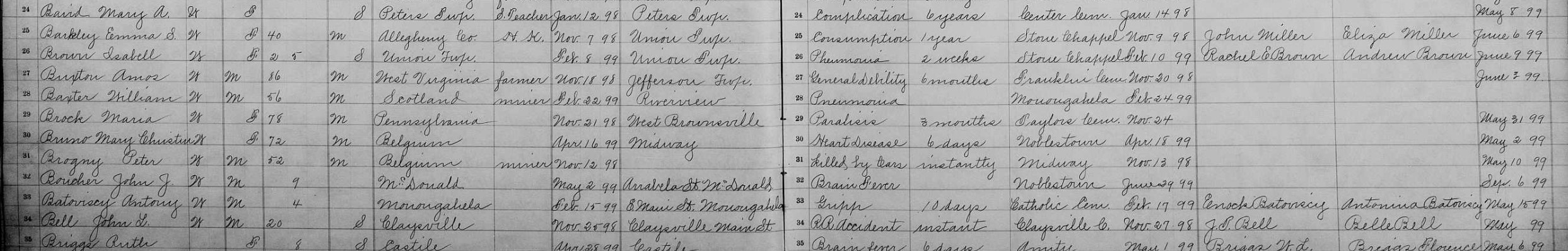 Washington County, PA Death Records, 1893 - 1906, Vol 1, page 22