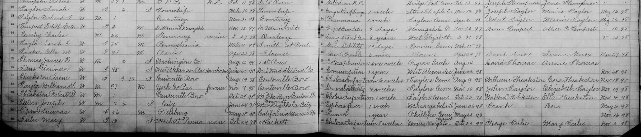 Washington County, PA Death Records, 1893 - 1906, Vol 1, page 250